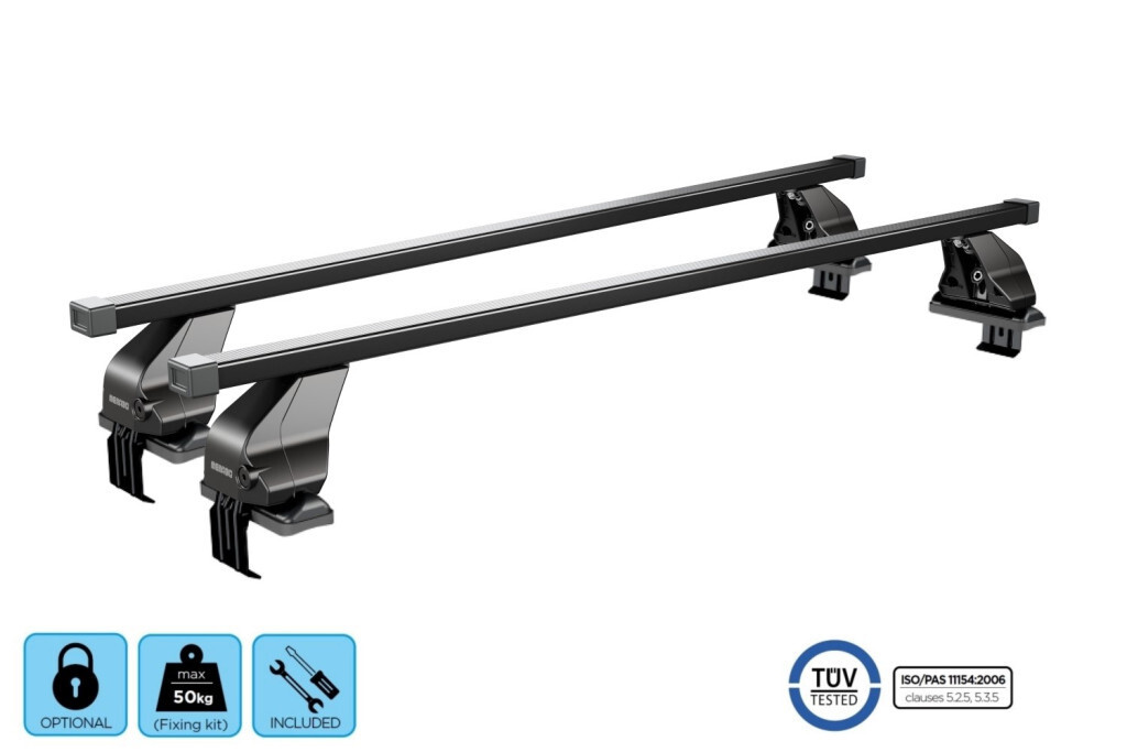 Prierez tyče32 x 22 mmNosnosťFarbaČiernaMateriálOcel a UV-odolný plastZámokZáruka2 roky| Typ výrobku | Strešný nosič |