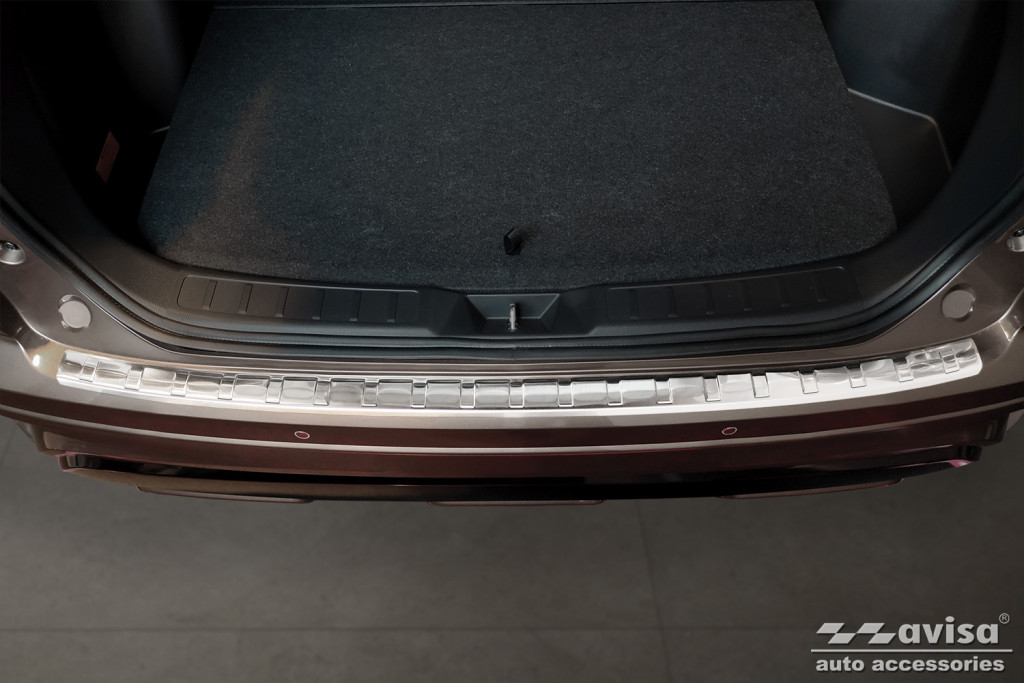 Na Avisa Avisa strieborný satén oceľ Ochrana nakladacej MITSUBISHI ECLIPSE CROSS PHEV SUV FL2021-> poskytuje nielen maximálnu ochranu pred rôznymi druhmi poškodenia, ale slúži aj ako dekoratívny prvok a atraktívny šperk pre vaše vozidlo.