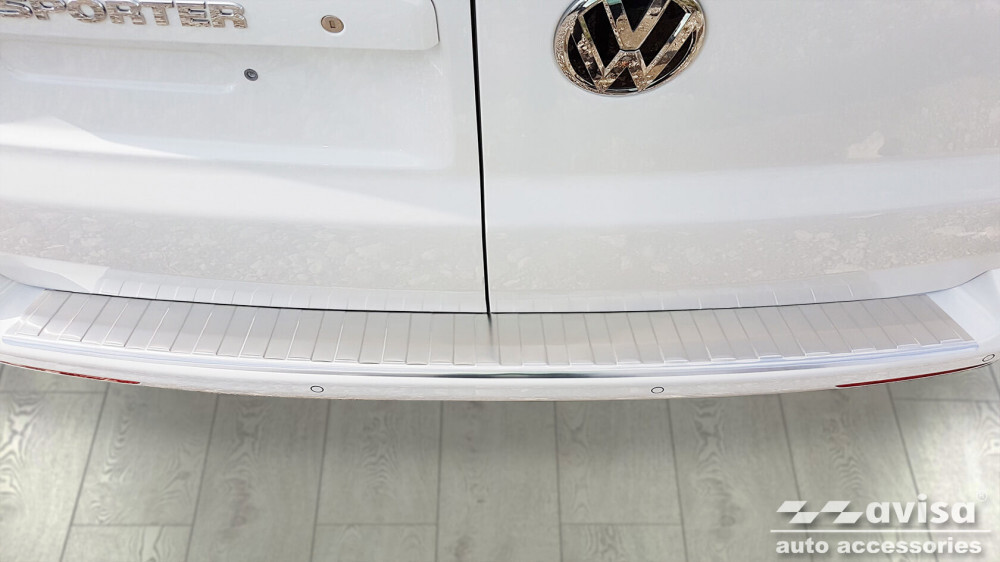 Na Avisa Avisa strieborná saténová oceľ Ochrana nakladacej dlhšia verzia TRANSPORTER T5 Multivan, CAR 2003-2012, FL2012-2015, TRANSPORTER T6 2015-2019, FL2019-2024 poskytuje nielen maximálnu ochranu pred rôznymi druhmi poškodenia, ale slúži aj ako dekoratívny prvok a atraktívny šperk pre vaše vozidlo.